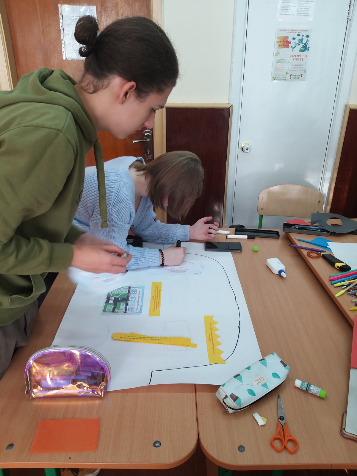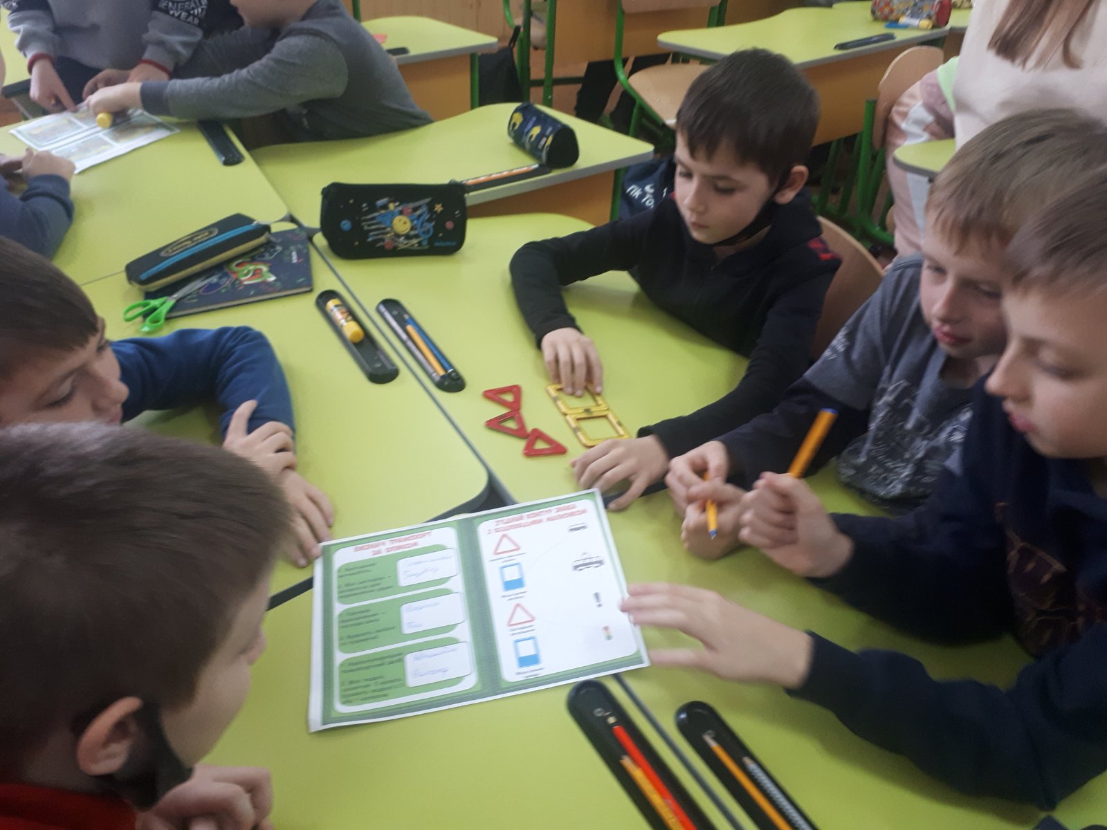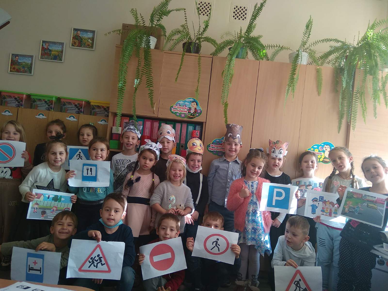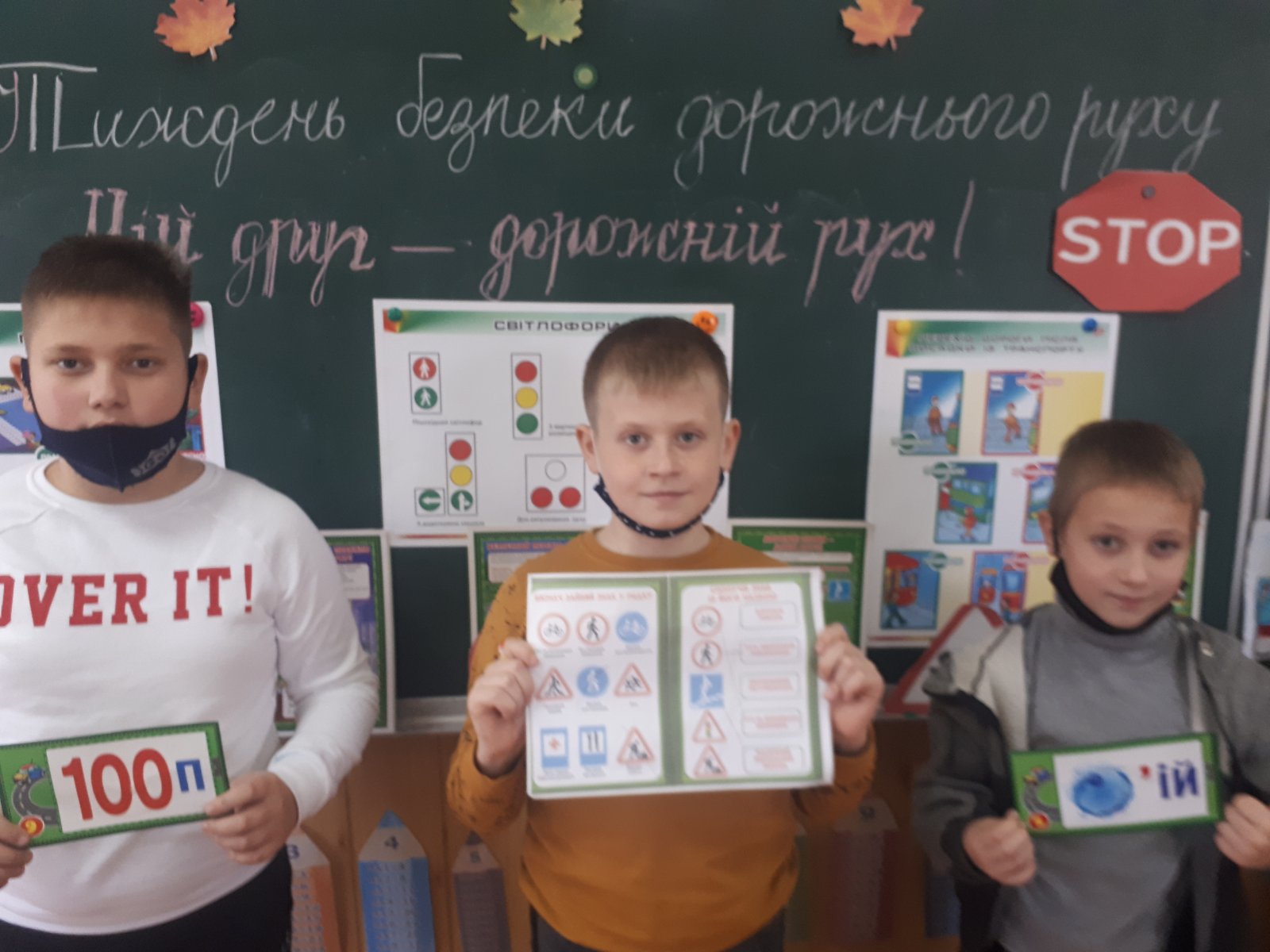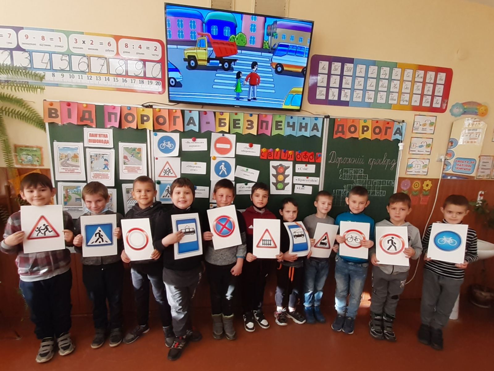 А малеча 4- Б класу, об'єднюючись у локації, узагальнила та систематизувала знання про безпеку на дорозі , виконуючи різні завданння : знайти зайвий дорожній знак у рядку; з'єднати дорожній знак із назвою, контур знака з малюнком, розгадували ребуси.