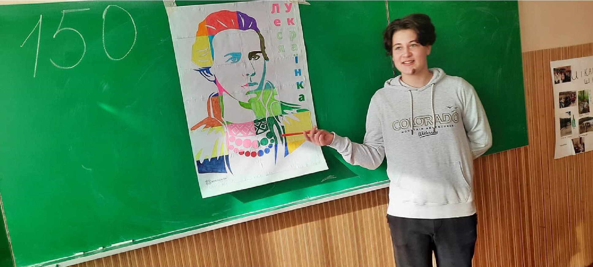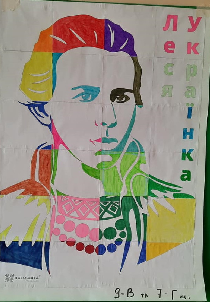 Ó÷í³ 9- òà 7-Ã Óæãîðîäñüêî¿ ÇÎØ ²-²²² ñò. ¹ 12 ñòâîðèëè ïëàêàò ñï³âïðàö³ ïðèóðî÷åíèé 150 ð³÷íèö³ â³ä äíÿ íàðîäæåííÿ Ëåñ³ Óêðà¿íêè