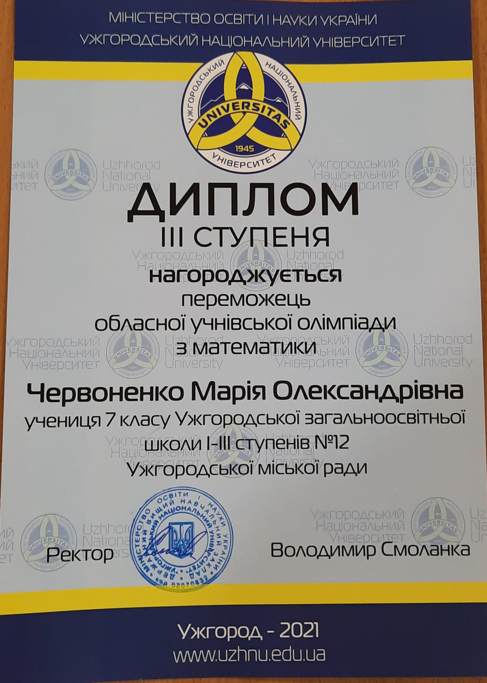 Гашко Софію, ученицю 8-А класу (ІІІ місце)