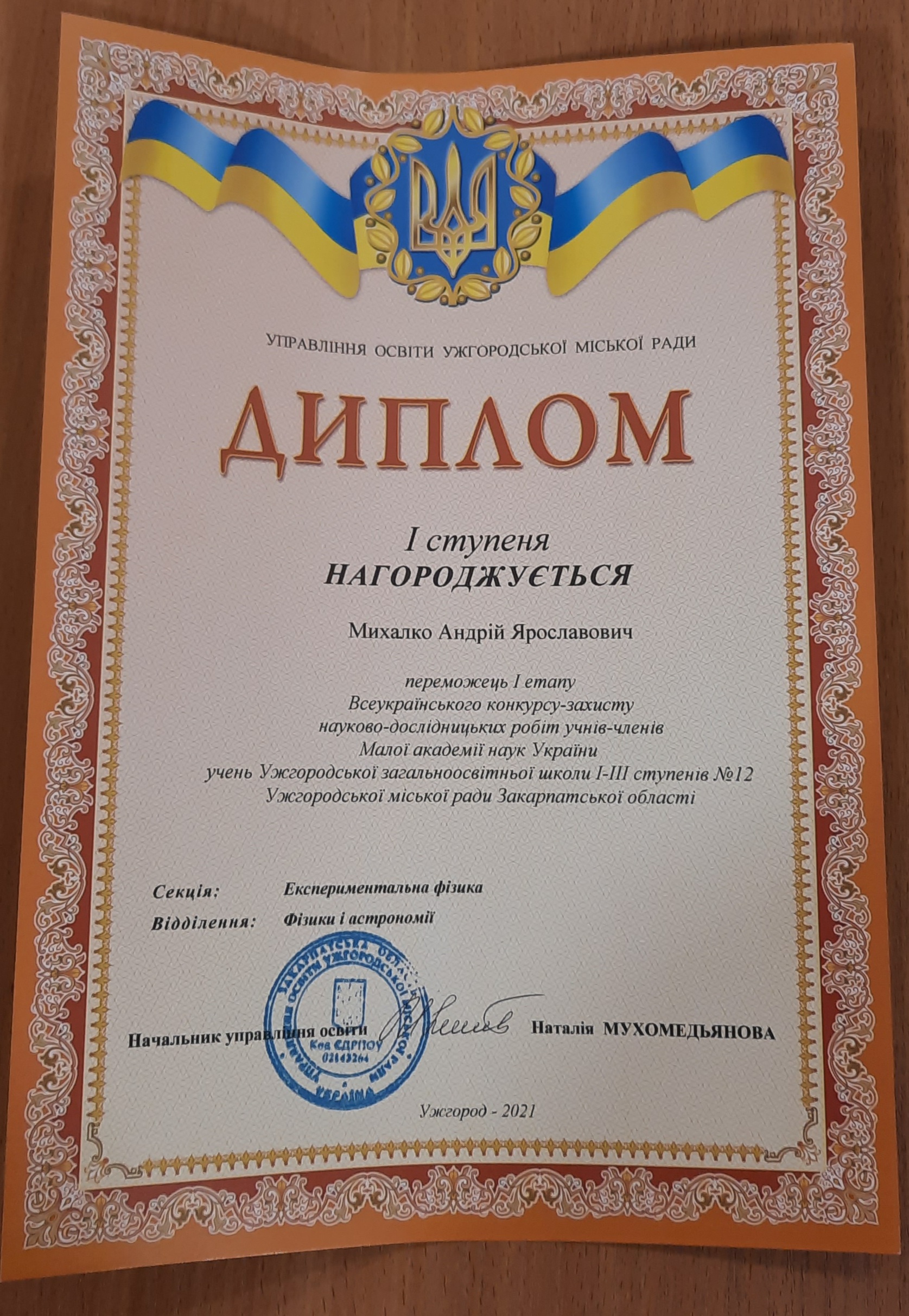 •Михалко Андрій – І місце у секції «Експериментальна фізика» (8-В клас);