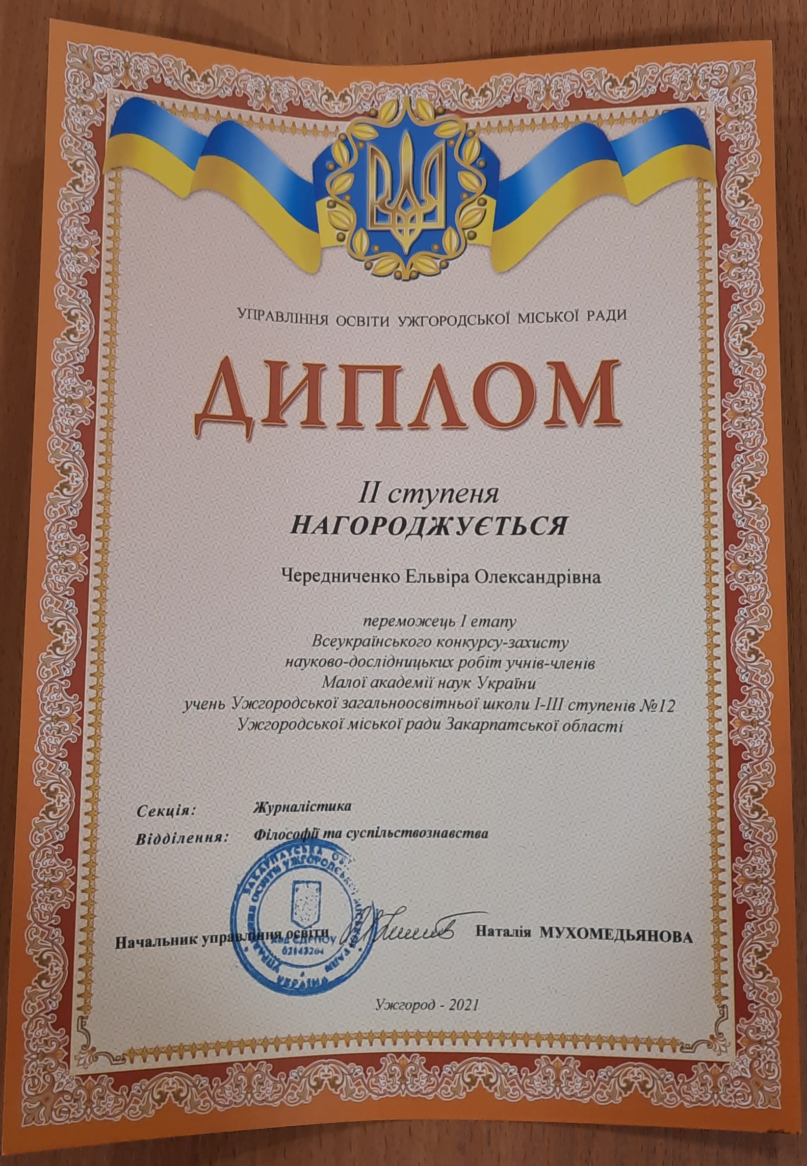 •Чередниченко Ельвіра – ІІ місце у секції «Журналістика» (10-Б клас);