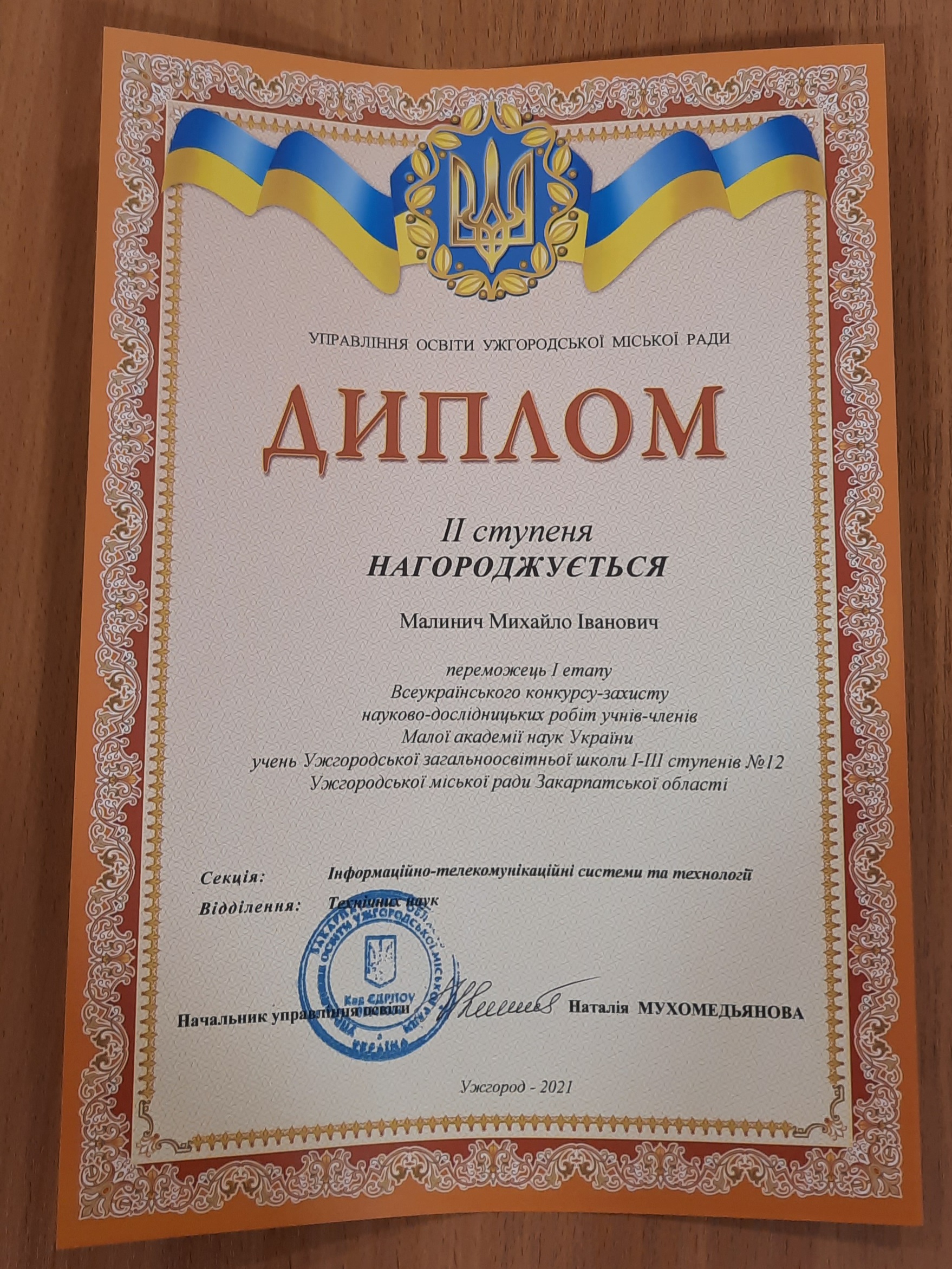 •Малинич Михайло – ІІ місце у секції «Комп’ютерні технології та веб-дизайн» (10-Б клас);